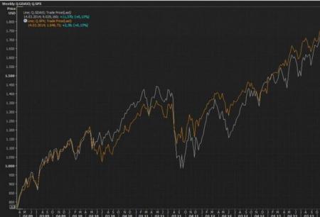 DAX®/S&P 500® Index in Punkten Wochenchart: (1 Kerze = 1 Woche)